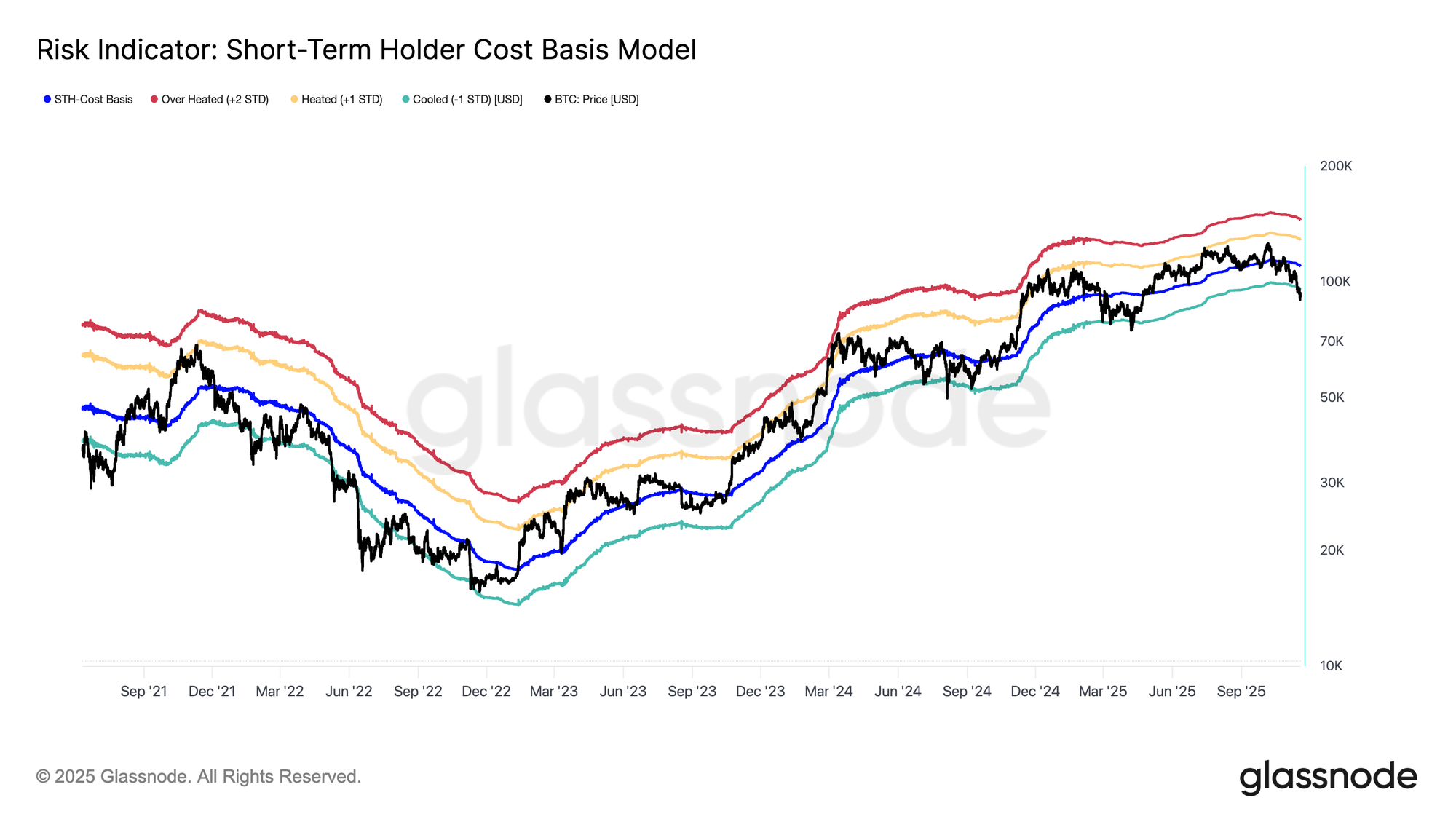 Bitcoin’s slide below 97,000 dollars confirmed the break of last week’s consolidation band. The fall extended toward 89,000 dollars, pushing price well under the short-term holder cost basis near 109,500 dollars and below the minus-1 standard deviation band at roughly 95,400 dollars.