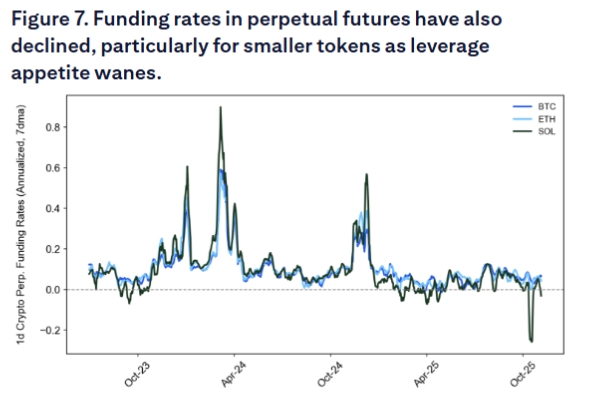 Funding rates fell, showing soft demand for leverage and fragile mood.