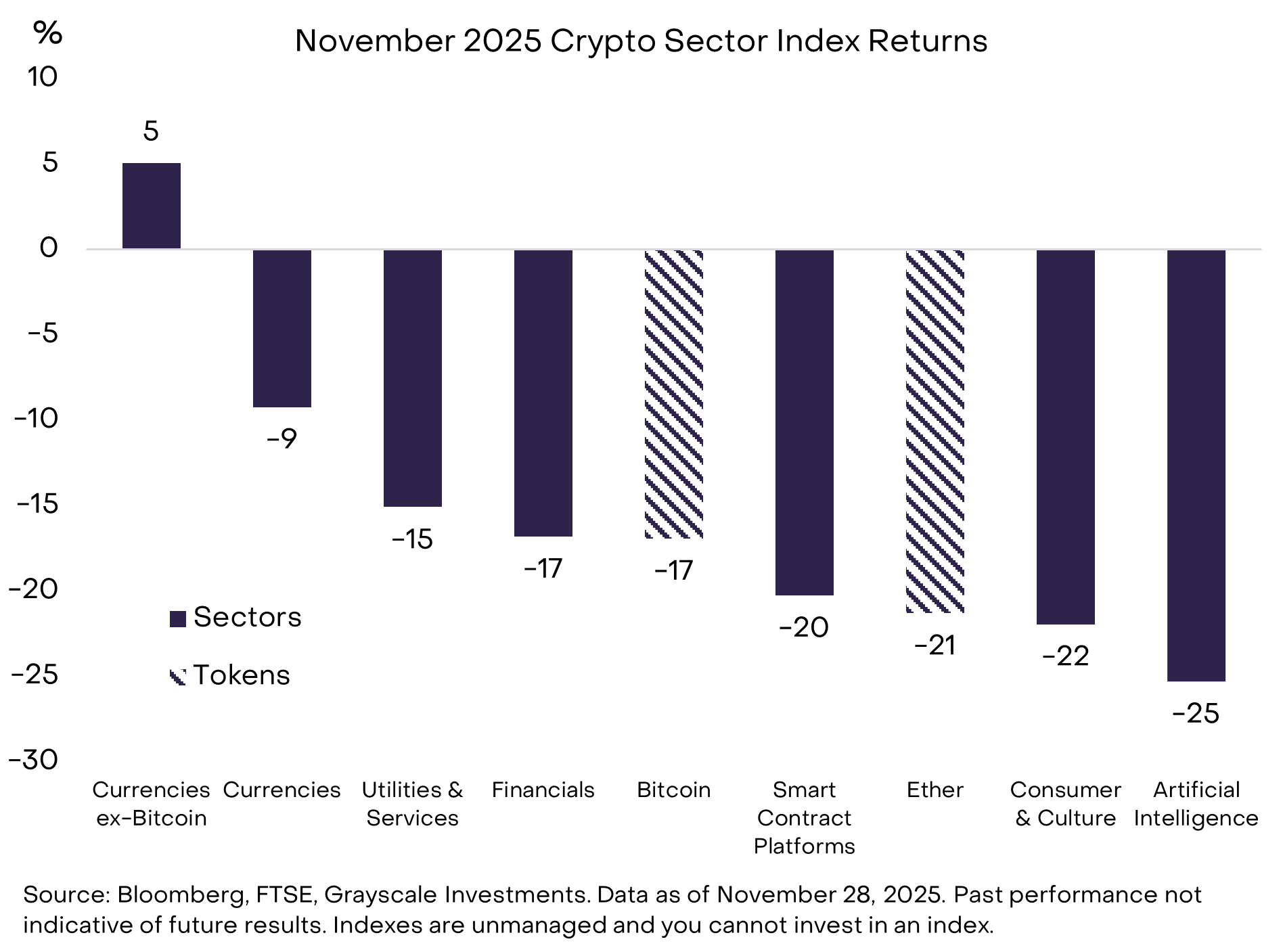 Zooming out beyond Bitcoin, November performance was all over the map. Privacy-focused currencies quietly outperformed. Zcash gained roughly 8%, Monero about 30%, and Decred around 40%. At the same time, Vitalik Buterin unveiled a new privacy framework at Devcon, and Aztec launched its Ignition Chain as a privacy-centric Ethereum Layer 2.