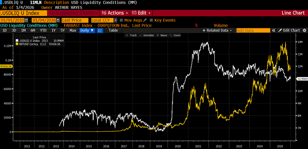 The strategy is simple: Expand credit, deficit spend, and force the Fed to buy the bonds. This is the Liquidity Supercycle. As long as oil prices (controlled via Venezuela) don't spike, the money printer stays on. This is rocket fuel for Bitcoin.