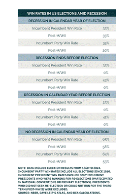 The stakes couldn't be higher. Statistical models show that if the US avoids a recession, Team Red has a dominant chance of retaining power. But if a recession hits, they are finished.