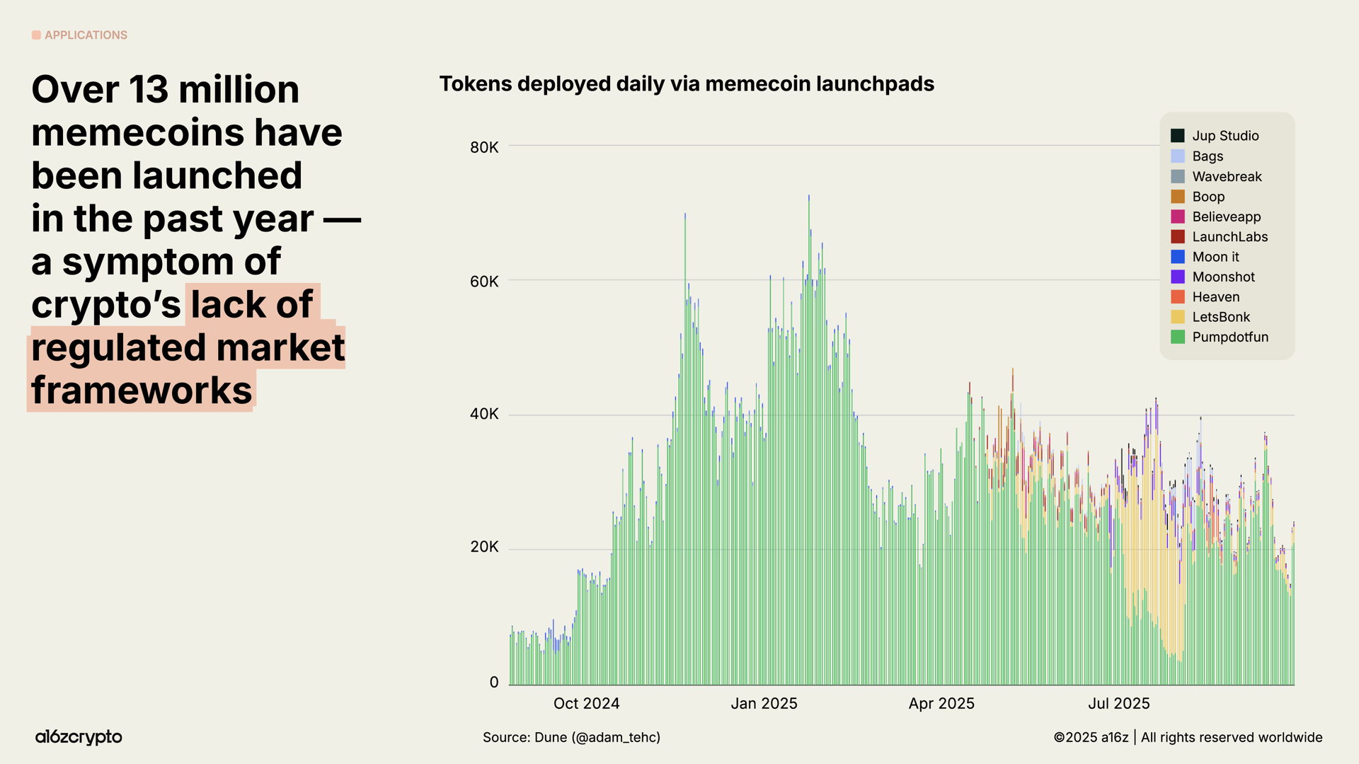 Memecoins flooded the zone with more than 13 million launches in a year, then cooled 56 percent from January to September as policy matured.