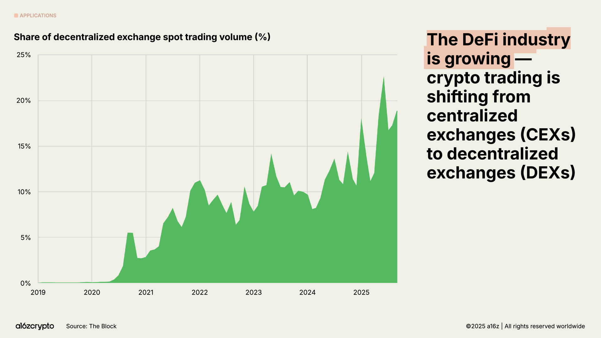 The slice of onchain spot trading continues to expand.