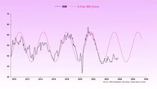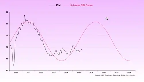 He starts with a familiar tool. The ISM index that tracks the business cycle. For a long time it behaved like a neat four-year rhythm. Then, in recent cycles, that regular pattern seemed to die. Many people gave up trying to use it. Raoul recalculated.