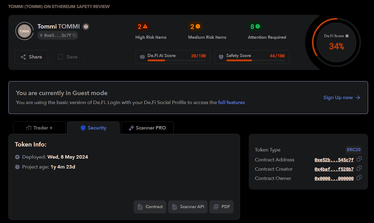 Run a contract health check. Use De.Fi Scanner to trip obvious wires. It’s not an audit. It is a mine detector.