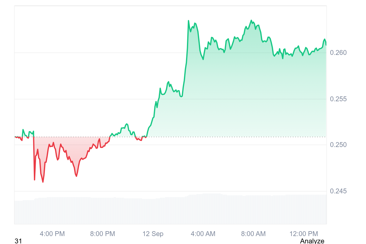 Delays usually sink a trade. Not today. Dogecoin rose nearly 4 percent in the last 24 hours to $0.2603, according to CoinMarketCap data. The market shrugged. Buyers stepped in. That tells you where momentum sits.