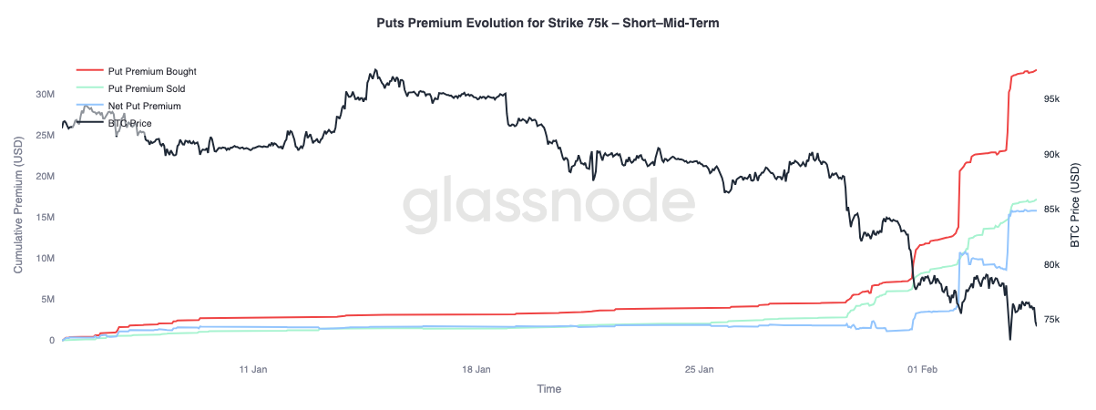 Finally, the $75k Put strikes are seeing massive buy-side activity. The premium bought (red) far exceeds premium sold (green), confirming that the "Smart Money" is using this level as a line in the sand.