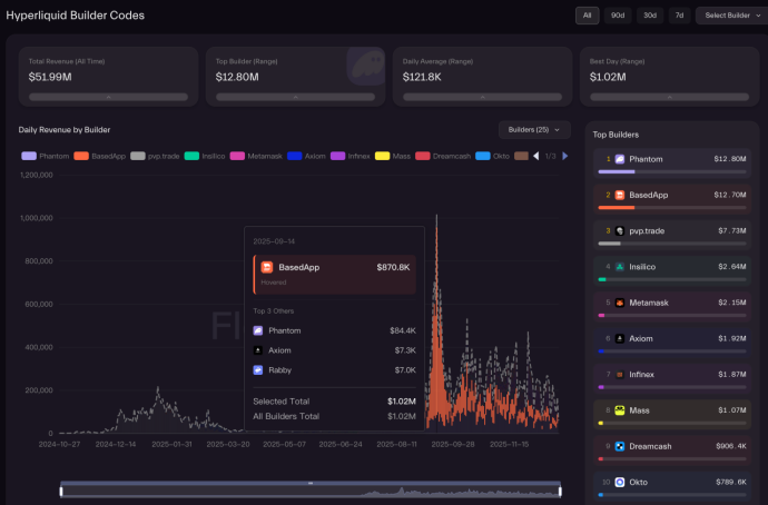 Hyperliquid's "Builder Fee" mechanism—allowing front-ends to charge extra on user orders—created an initial $12M hype cycle. However, the data shows a sharp cliff. The disparity is glaring: Metamask, despite its massive user base, generates 5x less revenue than Phantom. This isn't just about traffic quality; it's a strategy failure. The absence of Jupiter and the low returns for BasedApp prove that the simple "traffic pipe" model is dead.