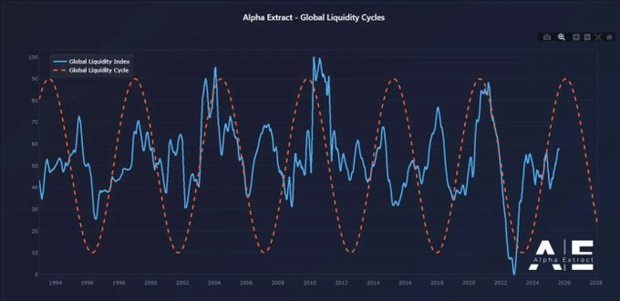 The catalysts are clear. Bank credit expands when the ISM moves above 50. Money market funds see outflows after a rate cut. The Treasury issues long-term bonds to push long-term yields down. A weaker dollar eases global financing pressure. When these hit together, crypto historically rallies late in the cycle, after stocks and gold.