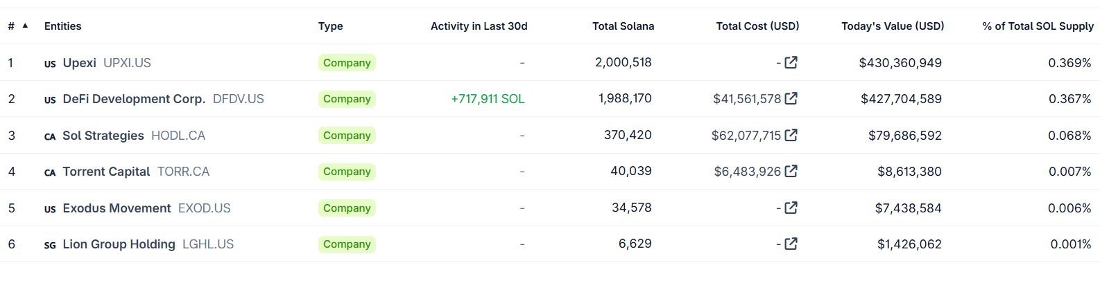 Lion Group secured a $600 million facility from ATW Partners in June to build a crypto treasury focused on HYPE and other altcoins. They cited SOL for consumer app dominance. They cited SUI’s link to World Liberty Financial. The company holds about 6,629 SOL worth over $1.4 million, making it sixth on CoinGecko’s SOL treasury list, and over one million SUI worth $3.5 million. If they sell SOL and SUI at current prices, they could buy more than 96,000 HYPE. They already hold more than 128,000 HYPE.