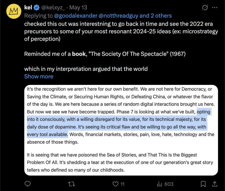 Read outside the echo chamber. Niche essays beat viral threads. Old papers beat hot takes. Macro, semis, power politics, luxury scarcity, AI supply chains. Fill your head with different signals and your ideas stop sounding like everyone else’s. Yes, read docs. Know what you own.