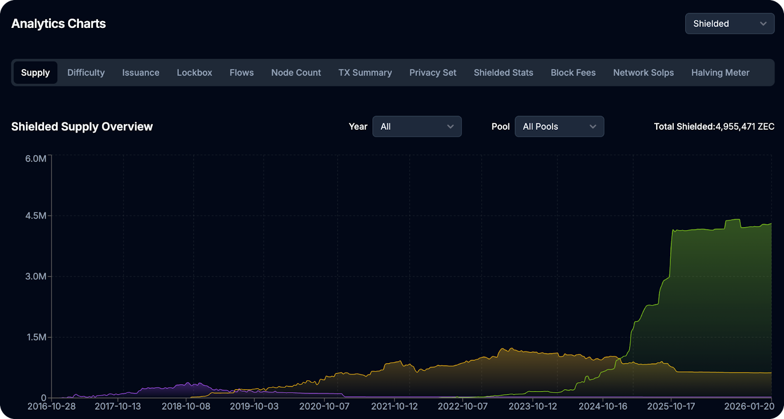 Zcash uses an opt-in model. Users can choose between transparent transactions (like Bitcoin) or "shielded" ones. The problem is that most users are lazy. Only about 30% of ZEC supply sits in shielded pools. If you use privacy features on Zcash, you are the outlier, which paradoxically makes you more interesting to chain analysts.