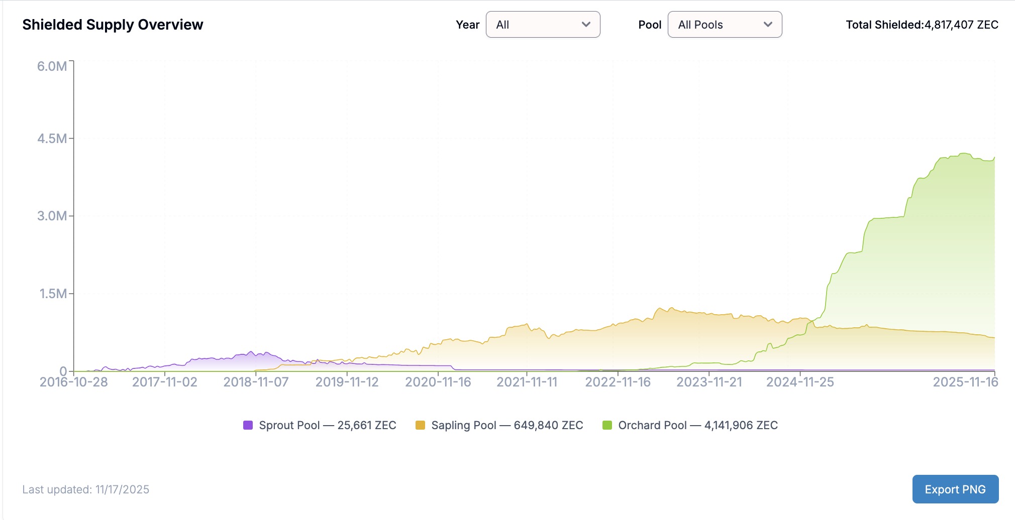 That pool now holds nearly 4.9 million ZEC, the largest in its history.