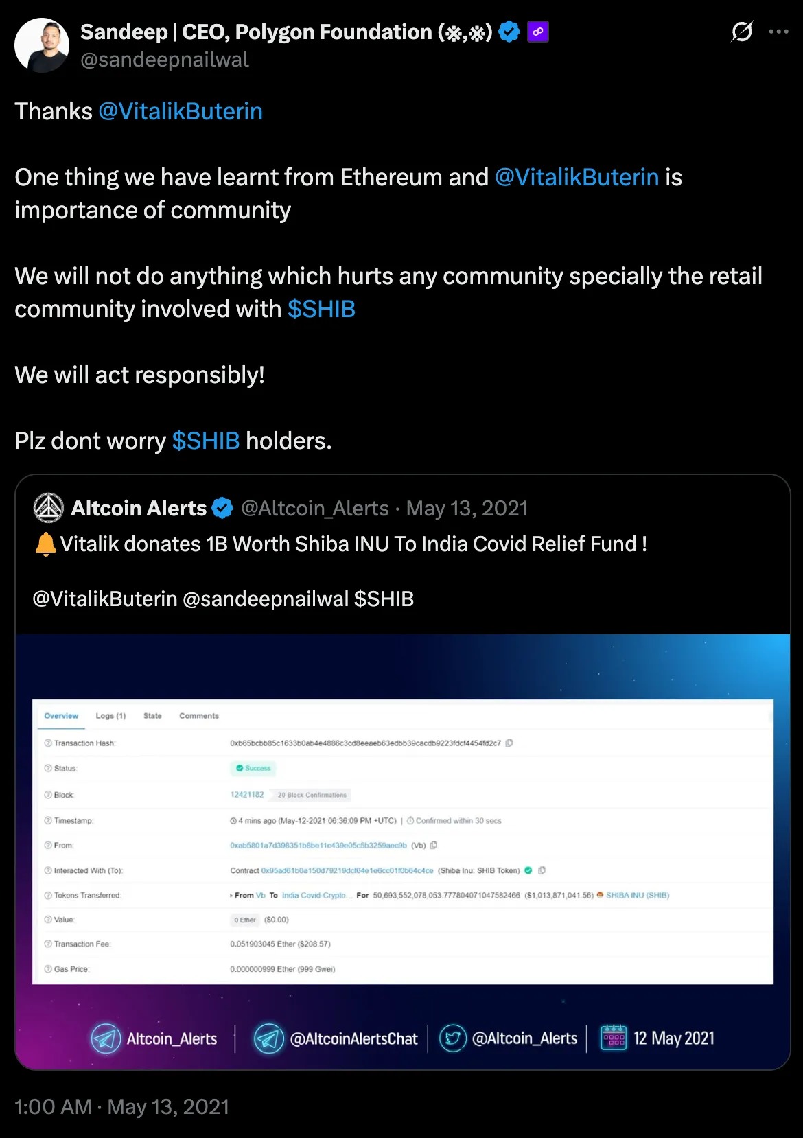 April 2021 hit India hard. Hospitals overflowed. Oxygen ran out. Nailwal’s family in India caught COVID while he was stuck in Dubai. He set up a multisig wallet to raise crypto for relief. He hoped for