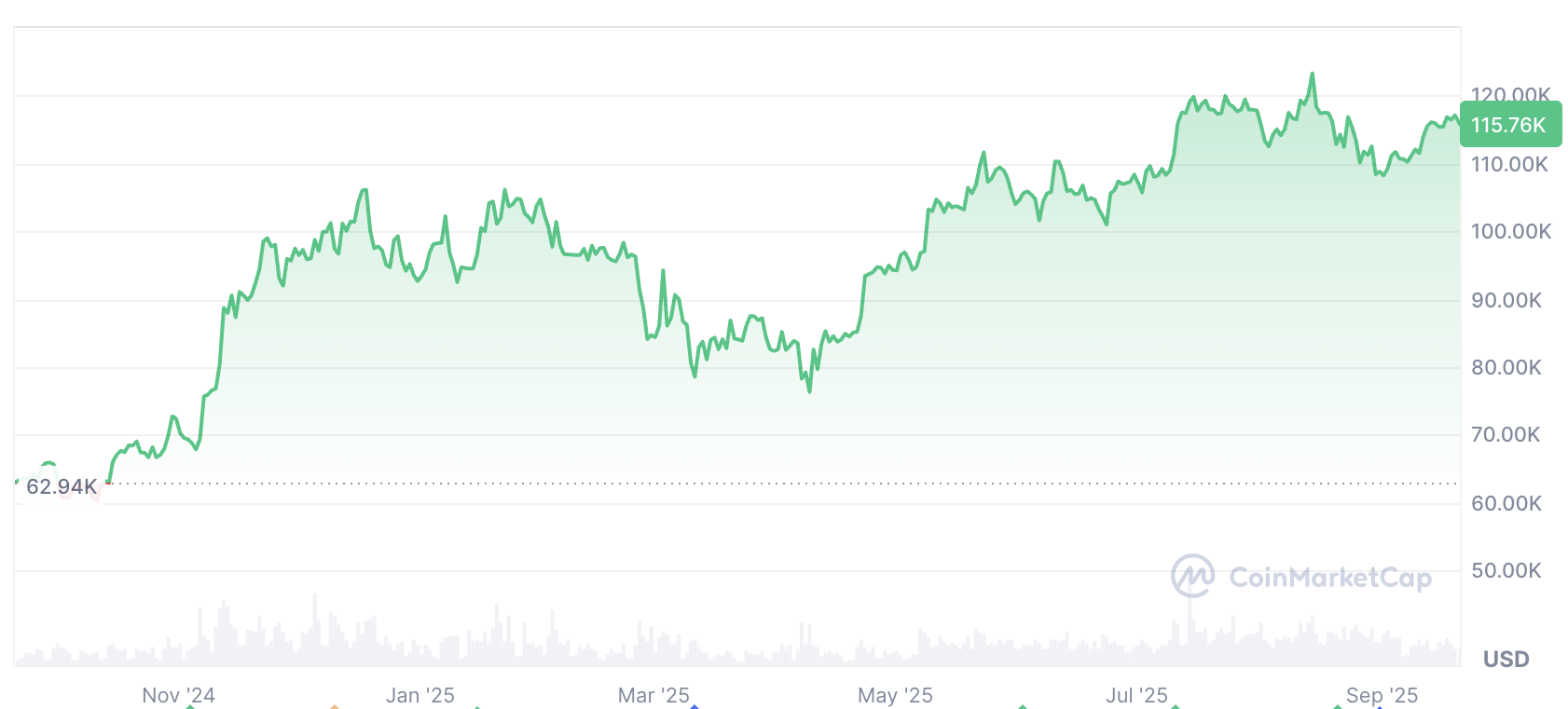 Bitcoin set a new all-time high of 124,100 on Aug. 14. Since then it has paused. At publication time it trades near 115,760, close to its $114,618 level on Aug. 21, according to CoinMarketCap.