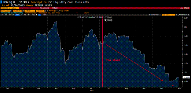 From its all-time high in early October, Bitcoin is down 25 percent. Altcoins are getting beaten harder than a capitalist in a New York City election. What happened? The rhetoric hasn't changed—Trump still wants cheap money. But the liquidity has contracted.