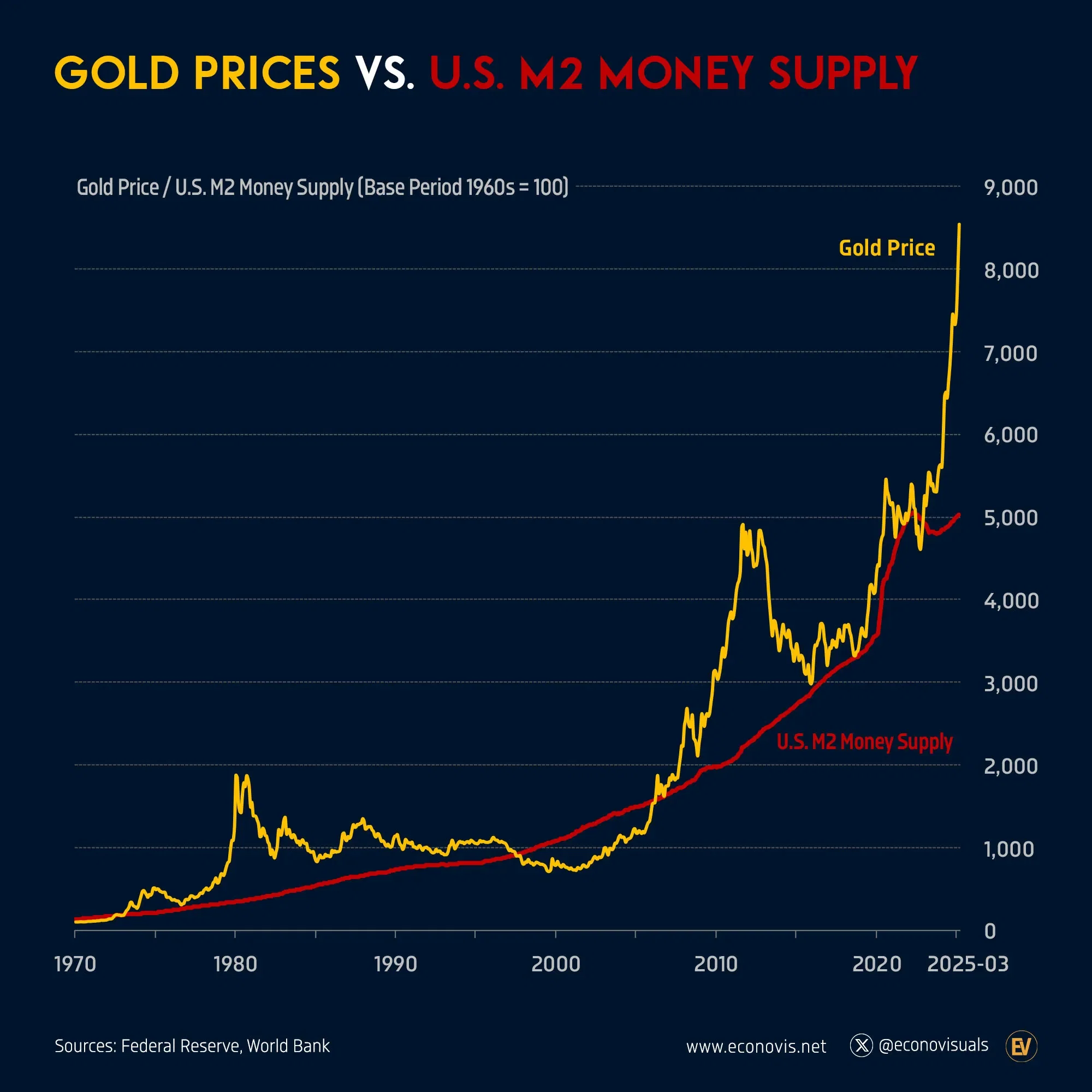 When you look at the M2-adjusted chart, Gold is trading at roughly the same purchasing power levels it held in 1975. It preserves wealth, sure, but it doesn't expand it. It just keeps you from drowning.