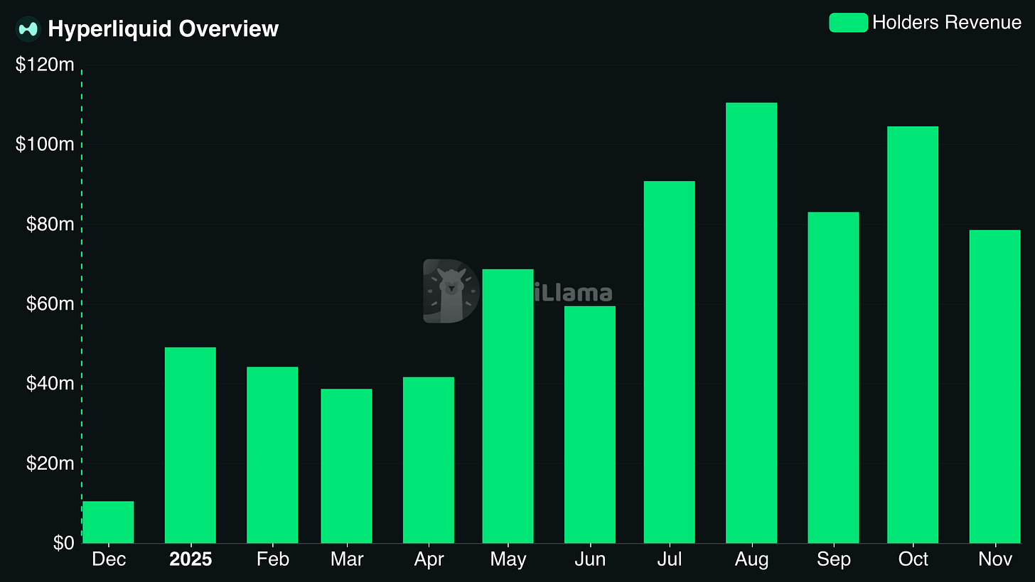 Hyperliquid is one example. Its holders revenue regularly surpasses 100 million dollars in a single month, which is tremendous by any standard.