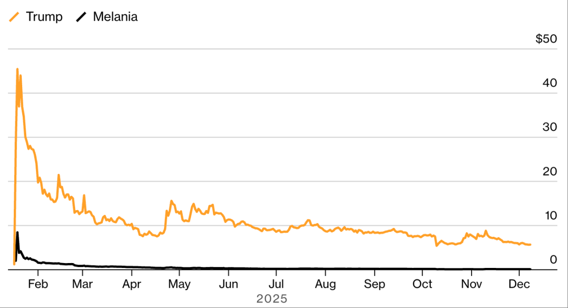 The reporting notes TRUMP fell about 92 percent from its peak, trading around \$5.9 on Dec. 10, while MELANIA dropped roughly 99 percent to about \$0.11. Meanwhile, Blockworks data cited in the piece said overall memecoin volume was down 92 percent from the January peak by November. That looks less like a pause and more like saturation. Retail does not get infinite lives.
