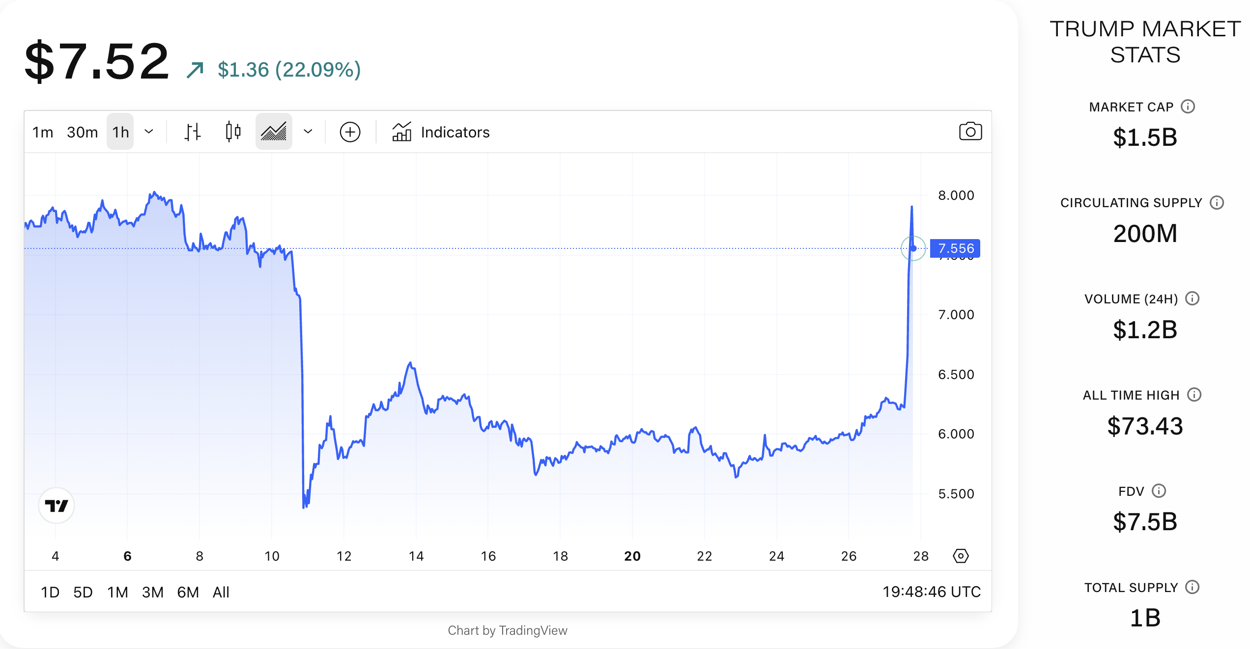 Trading in TRUMP topped 1.5 billion.