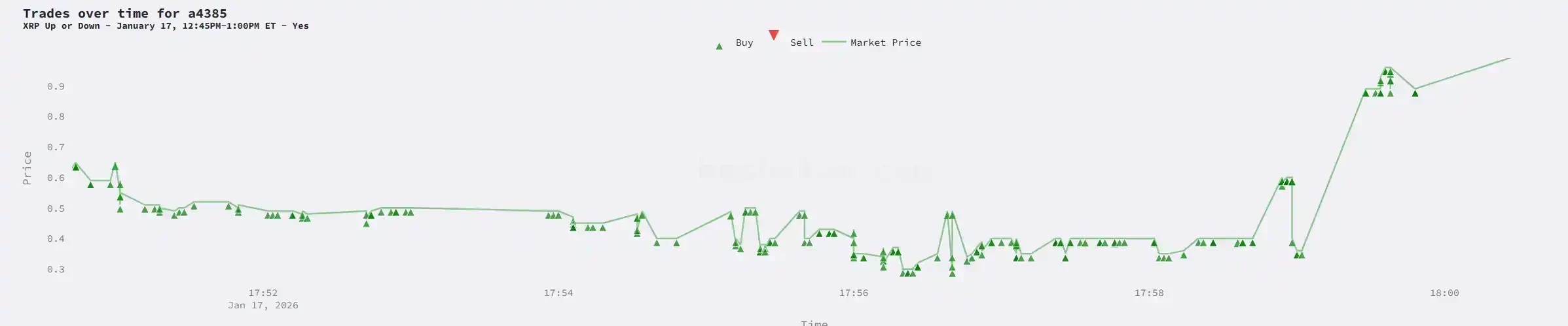 The Setup: With 66 seconds left, XRP was at $2.0737, well below the $2.0784 strike price. The bots calculated a 36% win probability and happily took the other side of the whale's bets.