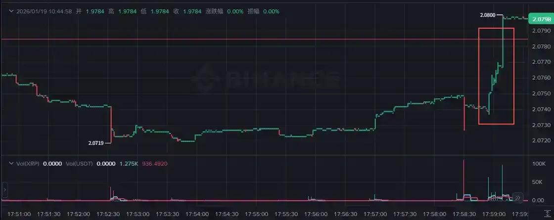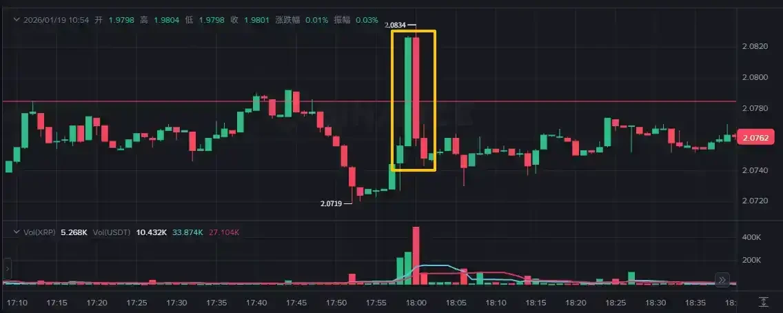 The Kill: In the final minute, huge buy orders hit the spot market, pushing XRP to $2.0817 exactly at expiration. The bots were wiped out.