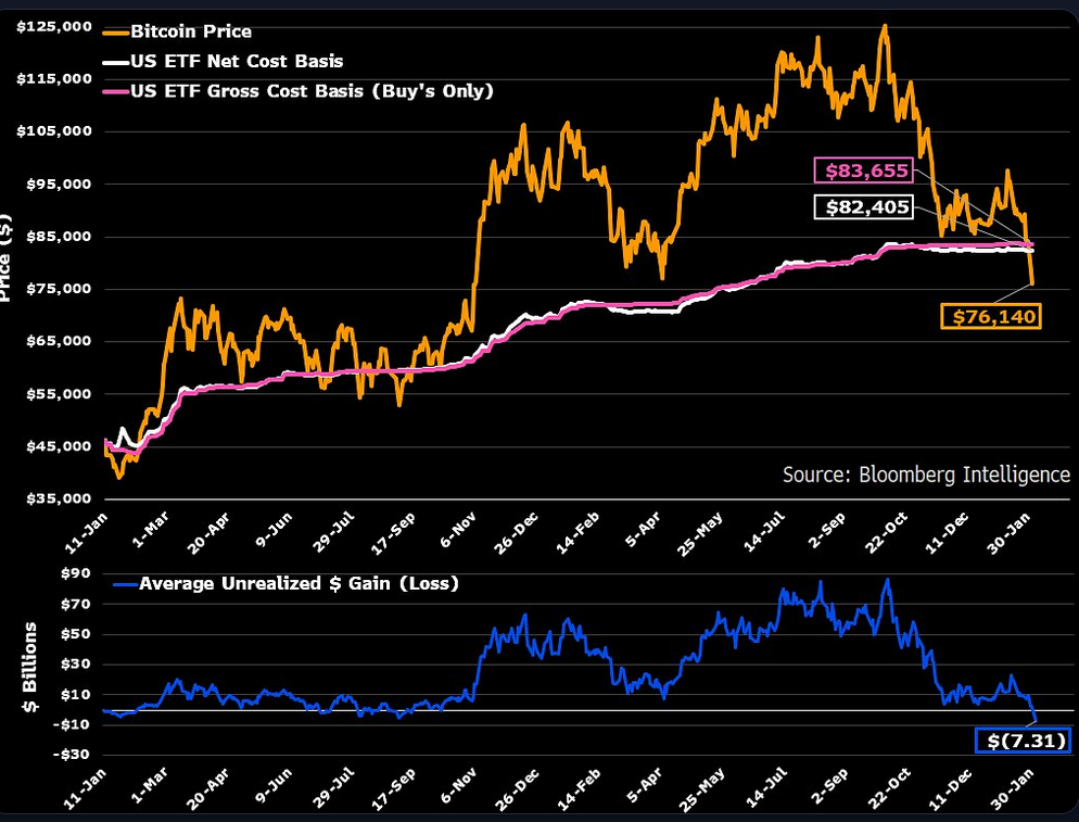 The structural support for BTC has fractured. US Spot Bitcoin ETFs have bled over $6B in net outflows over the last four months. This matters because ETFs acted as price-insensitive buyers; now, they are price-insensitive sellers. With the average ETF holder sitting on a 42% loss, capitulation is mechanical, not emotional.