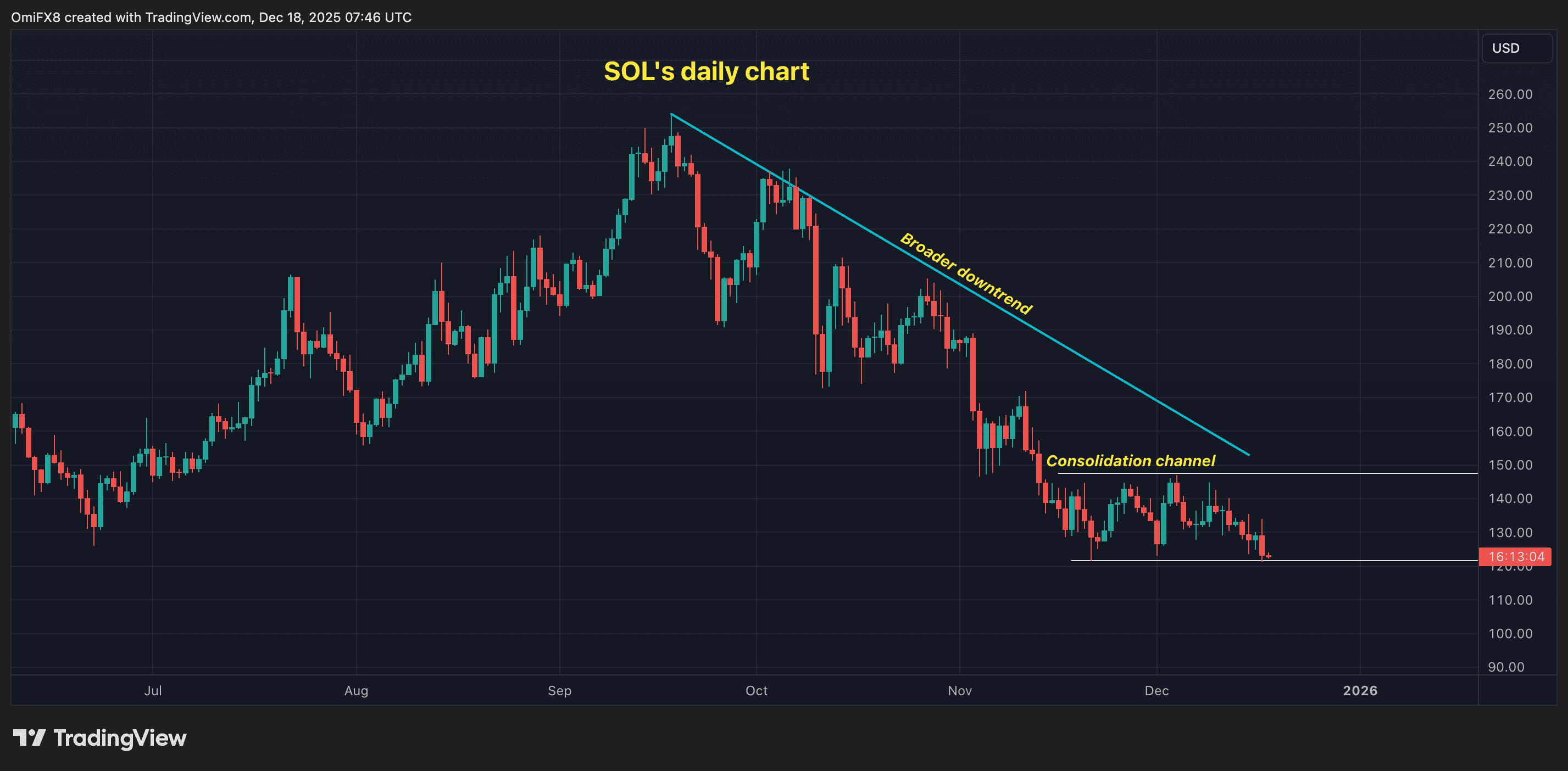 Solana is currently trapped in a high-stakes range. The token is stuck between a ceiling of $147 and a floor of $121. Sellers have maintained total control since the September high of $253. Now the price is flirting with a total breakdown at the bottom of this channel. A move below $121 would be a disaster for the ecosystem. It would likely expose the April lows near $95. The bulls must reclaim the $132 mark with extreme violence to stop this slide.