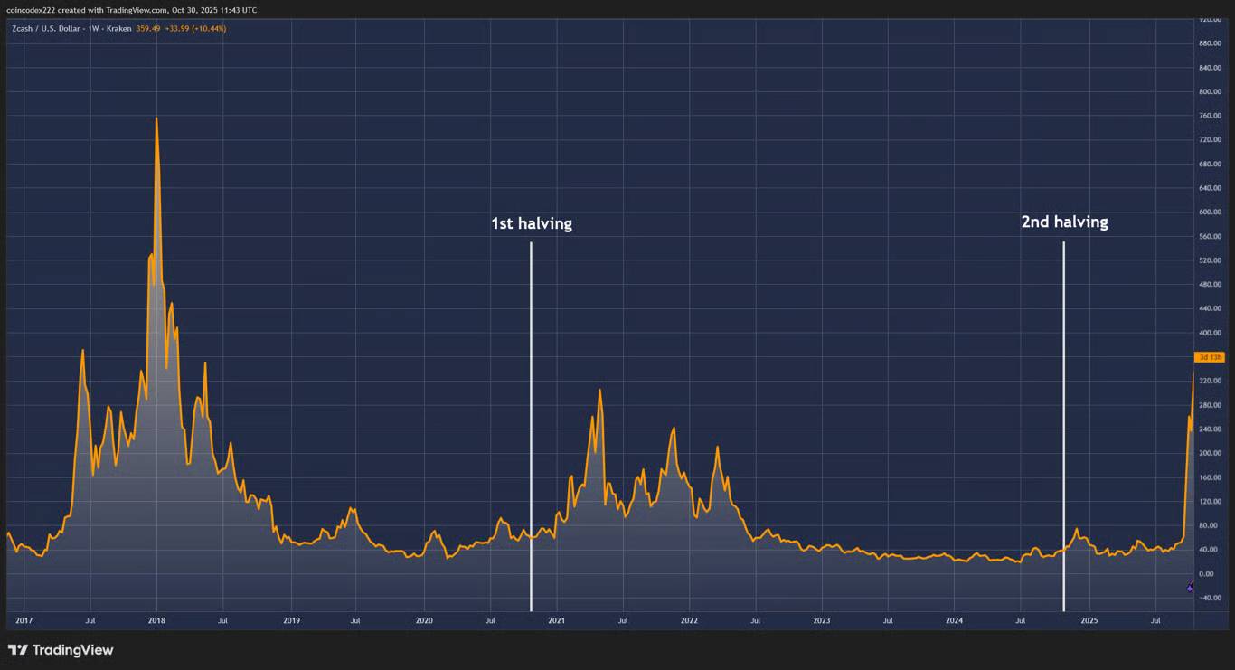 In the past few months, Zcash (47 to a high of 429, the highest in eight years, with its Fully Diluted Valuation (FDV) surpassing $8 billion. This surge is not just about market timing. It's about Zcash's comeback as a critical player in the growing demand for privacy-centric digital currencies.
